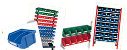 CAJAS DE PLÁSTICO APILABLES CON ABERTURA FRONTAL Y ACCESORIOS