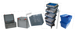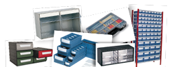 CAJAS DE PLÁSTICO APILABLES CON ABERTURA FRONTAL Y ACCESORIOS