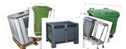 GRANDES CONTENEDORES DE PLÁSTICO, CUBOS DE BASURA Y PAPELERAS